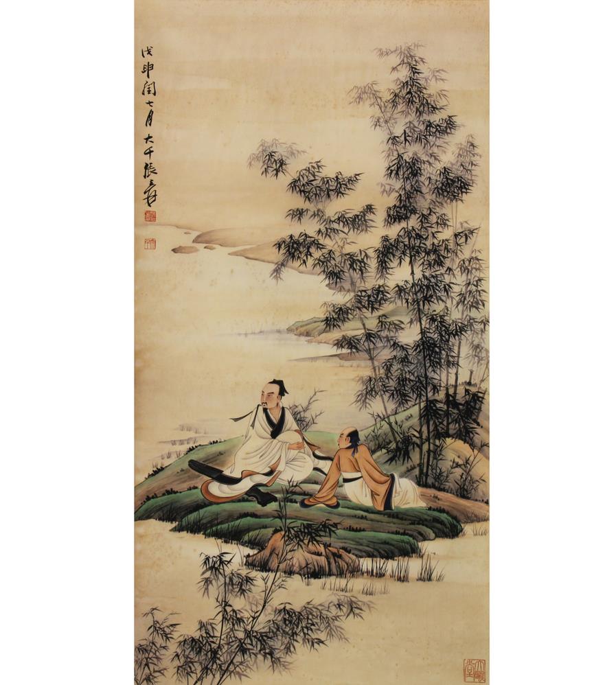 名稱:張大千款《竹溪聽琴》