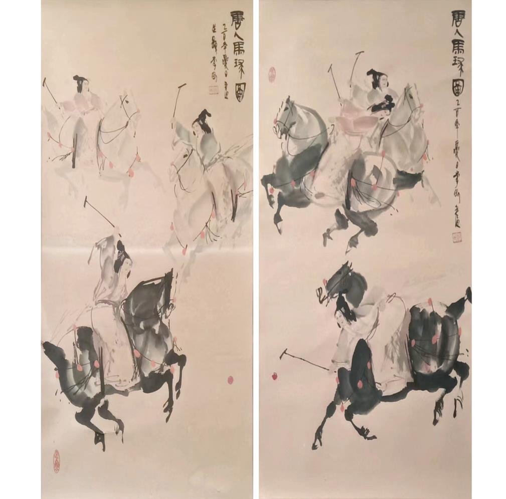 名稱:李剛款《唐人馬球圖》二條屏