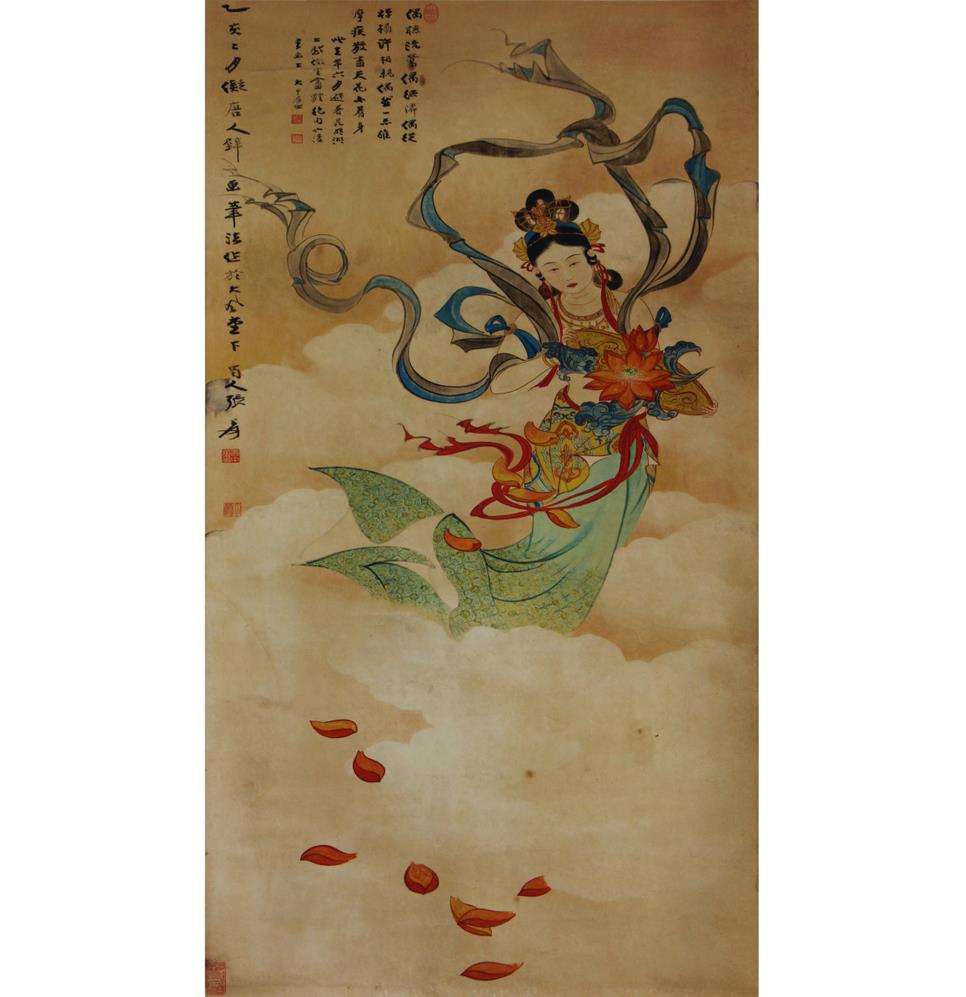 名稱:張大千款《仙女散花》