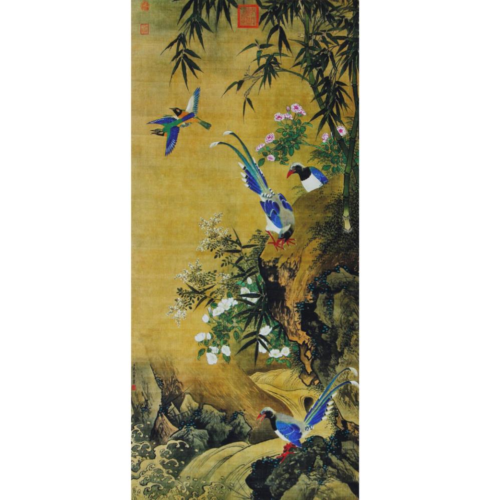 元代花鳥畫受宋代文同、蘇軾的影響,出現(xiàn)了一批專門畫水墨梅竹的畫家,他們以柯九思、仉瓚、吳鎮(zhèn)、王冕為代表,表現(xiàn)了文人的“士氣”。此幅以花、鳥、蟲等植物和動(dòng)物為描繪對(duì)象的畫。在中國畫中,凡以花卉、花鳥、魚蟲等為描繪對(duì)象的畫,稱之為花鳥畫。花鳥畫中的畫法中有“工筆”、“寫意”、“兼工帶寫”三種。王冕是以畫墨梅開創(chuàng)寫意新風(fēng)的花鳥畫家,對(duì)明清畫壇產(chǎn)生了十分深遠(yuǎn)的影響。此幅畫作構(gòu)圖有疏、密、疏密相宜三種,其首開密如繁花密蕊構(gòu)圖法。并且是有明確的清宮舊案印記:“乾隆御覽之寶、嘉慶御覽之寶、宣統(tǒng)御覽之寶”另外紙張來講也是典型的老裝老裱。物品收藏價(jià)值較高!
