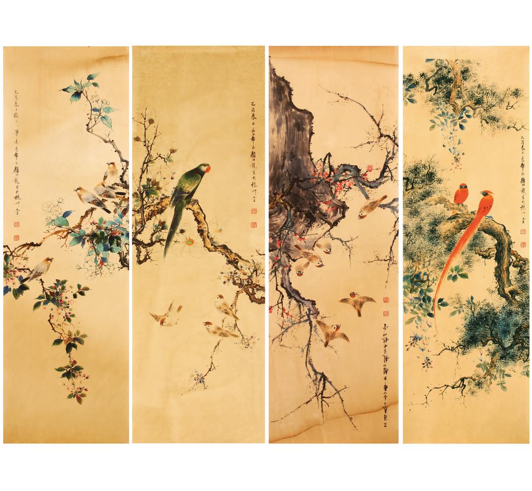 名稱:顏伯龍款花鳥四條屏
