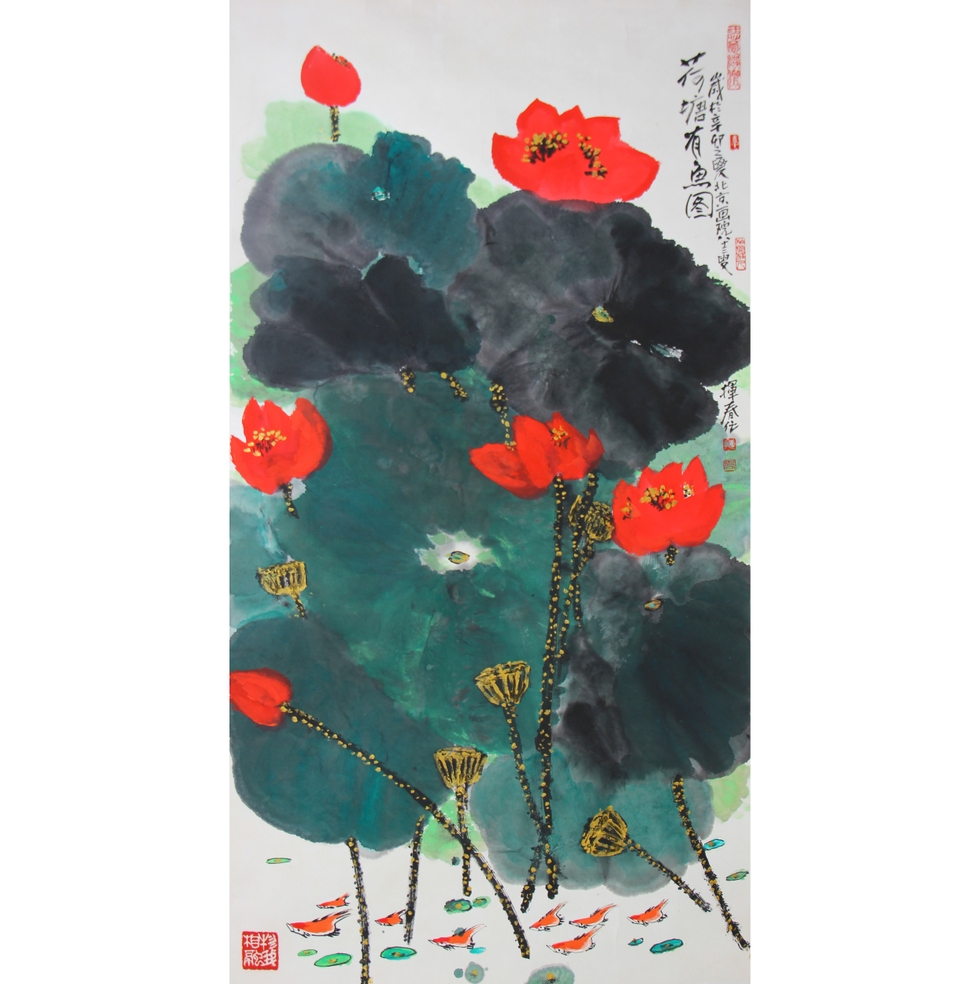 王揮春(1929-2022),筆名濤石,別號(hào)翔云齋主,柏樹(shù)莊人,男,漢族,1929年生于河北省灤縣。北京畫(huà)院專(zhuān)業(yè)畫(huà)家,一級(jí)美術(shù)師,中國(guó)美術(shù)家協(xié)會(huì)會(huì)員,中國(guó)延安文藝學(xué)會(huì)會(huì)員,中國(guó)畫(huà)研究會(huì)研究員兼常務(wù)理事,北京湖社畫(huà)會(huì)會(huì)長(zhǎng),齊白石藝術(shù)研究會(huì)常務(wù)理事,北京國(guó)際藝術(shù)博覽會(huì)評(píng)審委員會(huì)副主任,中國(guó)書(shū)畫(huà)函授大學(xué)教授,中華書(shū)畫(huà)名家研究院顧問(wèn),北京世界華人文化院顧問(wèn)。師從徐悲鴻、劉海粟等知名畫(huà)家,每一位都是可以開(kāi)宗立派的大師,這樣得天獨(dú)厚的師資條件,加上自身的刻苦鉆研與創(chuàng)新,王揮春成為新中國(guó)成立以來(lái)琺瑯彩壁畫(huà)的奠基人和首創(chuàng)人之一,是中國(guó)現(xiàn)當(dāng)代重彩寫(xiě)意花鳥(niǎo)、山水畫(huà)壇的標(biāo)志性畫(huà)家之一,被譽(yù)為當(dāng)代重彩畫(huà)第一人(本副作品是其重彩畫(huà)之一)。