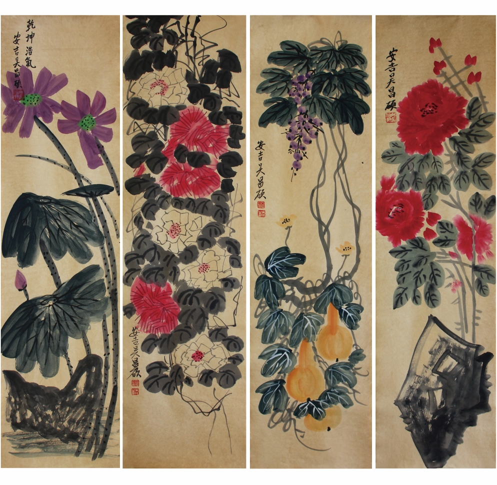 名稱:吳昌碩款 花卉四條屏