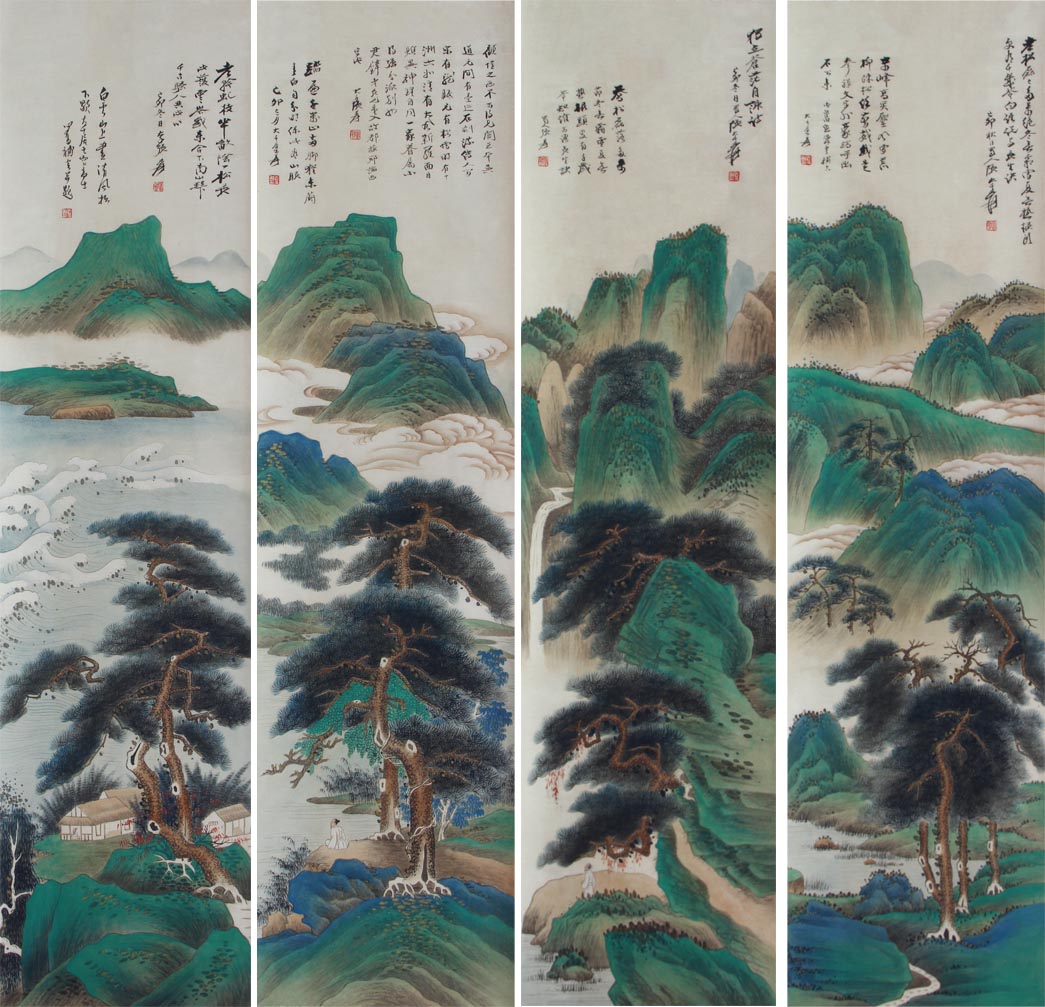 名稱:張大千·青綠山水四條屏