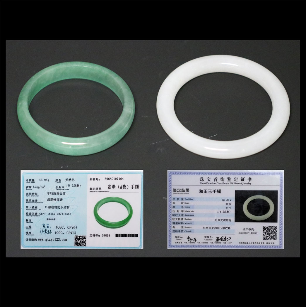 名稱: 和田玉.翡翠.手鐲兩只zy334-1