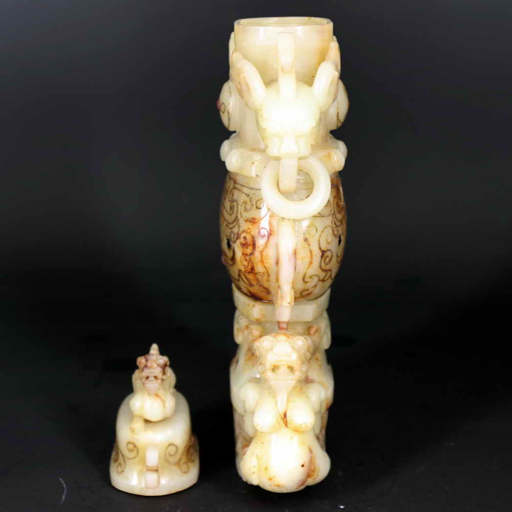 名稱(chēng):和田白玉瑞獸耳瓶zy440