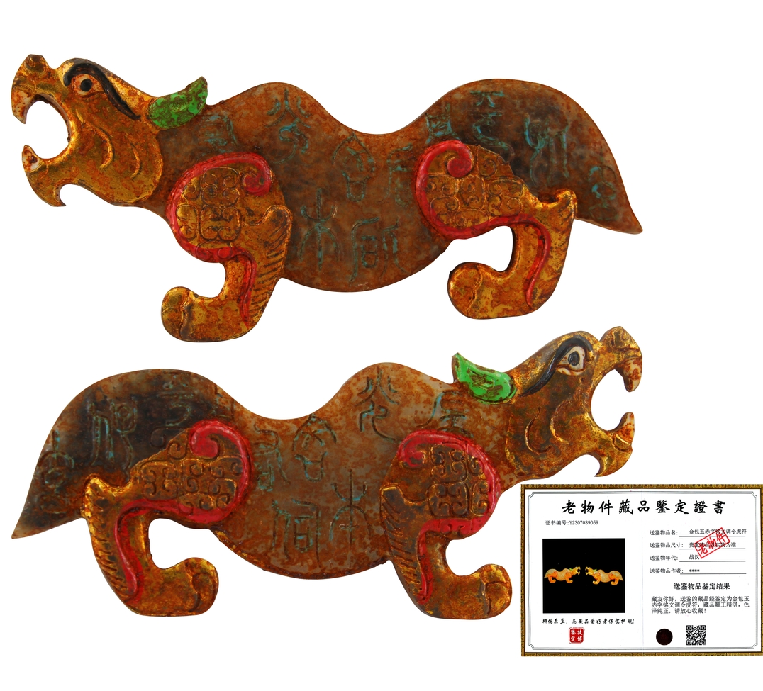 名稱:金包玉赤字銘文調(diào)令虎符 一對