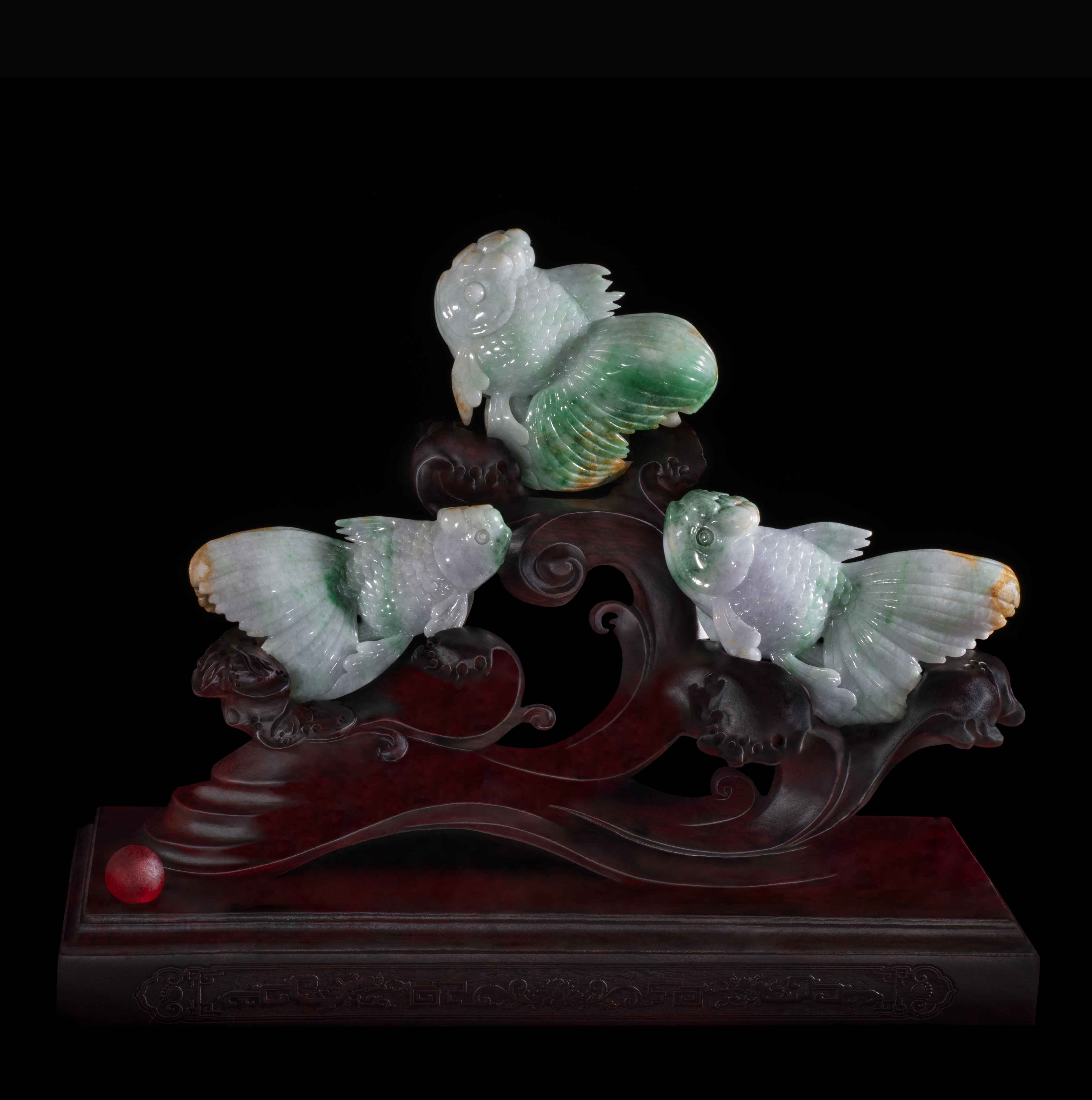 翡翠三魚擺件的雕刻技藝堪稱一絕。工匠們運用精湛的雕刻技術,將三魚的神態(tài)、動態(tài)刻畫得栩栩如生。魚兒的鱗片細致入微,鰭尾擺動自然,仿佛隨時都能游動起來。雕刻師在細節(jié)處理上的功力深厚,使得整個擺件充滿了生機與活力,展現(xiàn)了中國傳統(tǒng)工藝的非凡魅力。