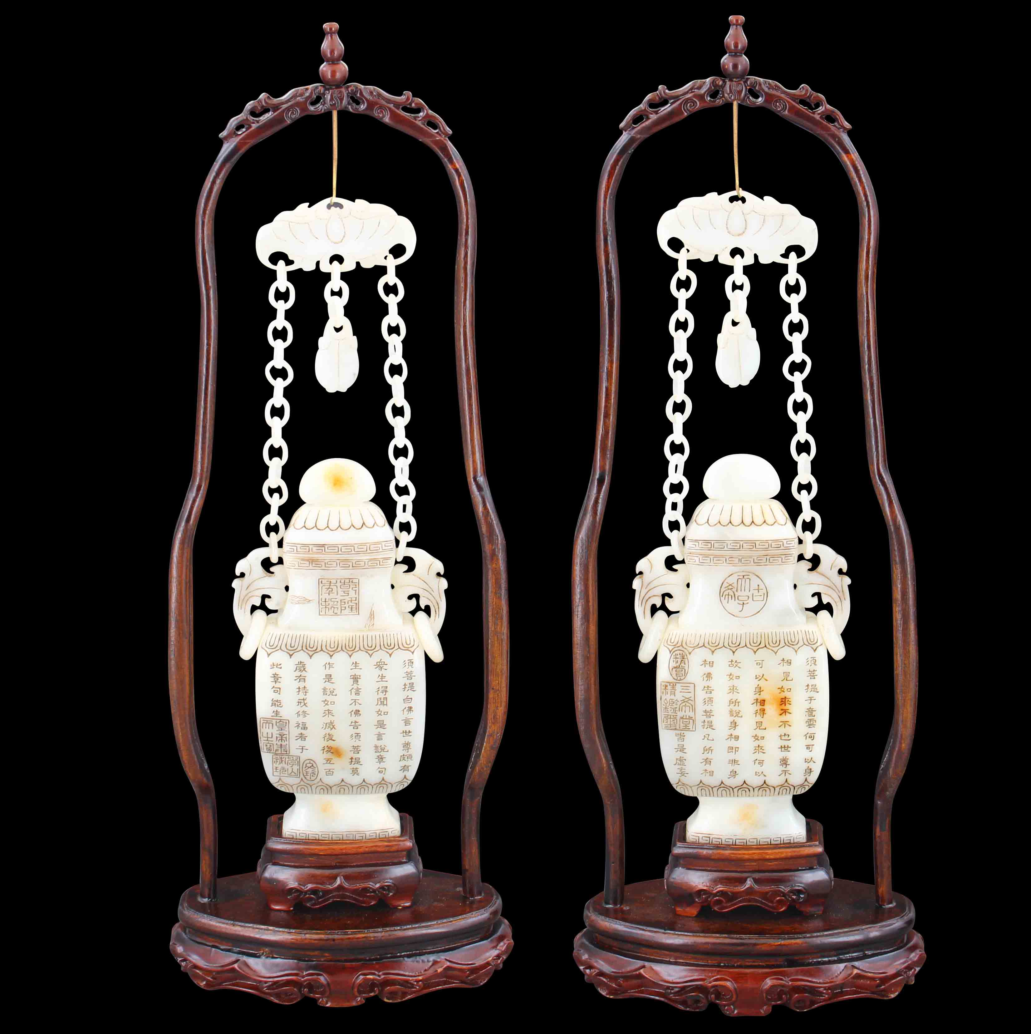 〈汪廷堅-和田玉鎖鏈雕玉瓶〉和田玉鎖鏈瓶是玉雕中匠心獨運的藝術品,以其獨特的造型和精湛的工藝聞名,不僅是對玉料質量的極致考驗,更是對雕刻技藝的極致挑戰(zhàn),整件作品以整塊白玉雕制而成,玉質溫潤細膩、色澤潔白剔透,造型端莊典雅麗質,分蓋身兩部分,整體由玉鏈和玉瓶組成,兩者共用一塊原料,通過鏈雕工藝,將玉料鏤空雕刻成一條完整能夠活動的鏈子,每一處吊鏈都環(huán)環(huán)相扣、與玉瓶自然相連,瓶身以雕刻詩文及收藏印章,為作品增添了詩意與意境,是傳統(tǒng)文化的完美詮釋,又展現(xiàn)出匠人的巧思與技藝,可謂是玉雕中之上品,入手極佳……