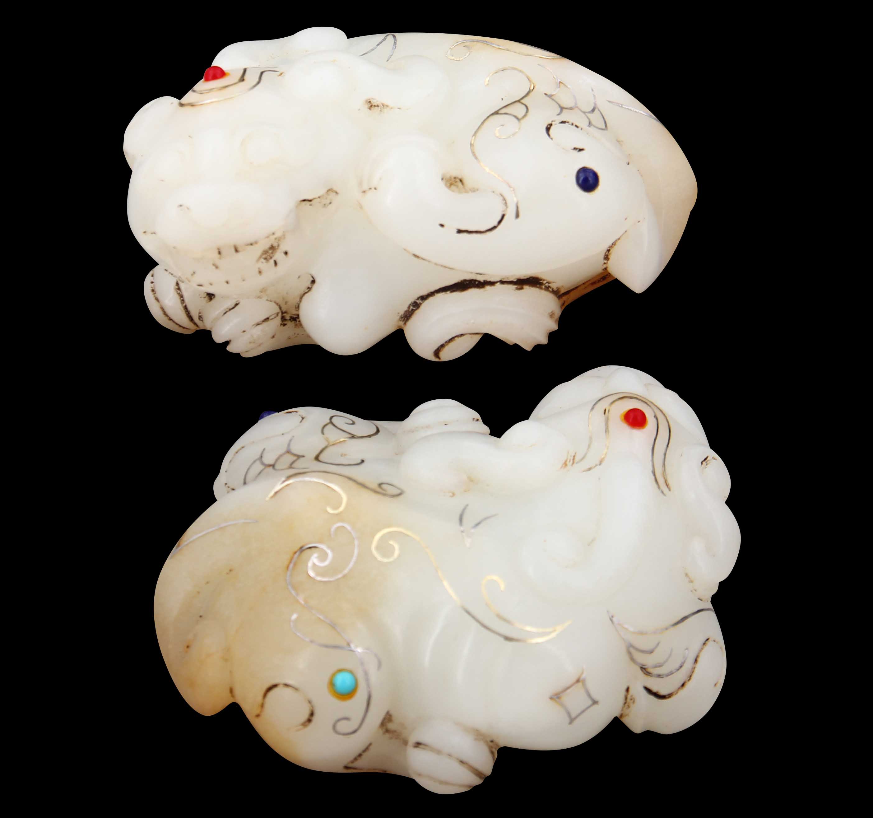 名稱(chēng):和田玉 描金鑲寶石貔貅把件