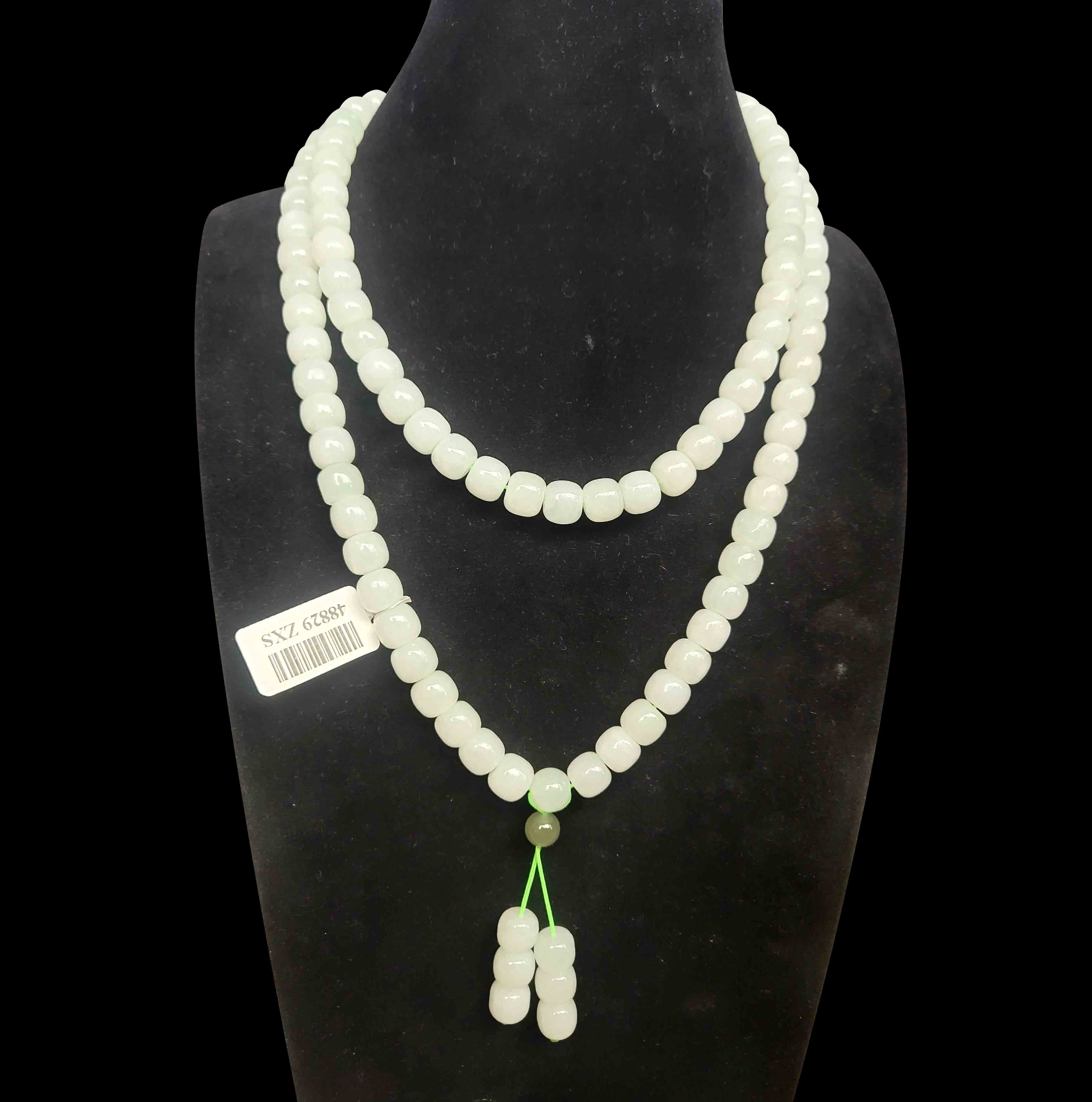 此108顆朝珠玉料為新疆阿格具改冰川冰舌料,玉質(zhì)冰透,潤,玉料極其珍稀,108顆朝珠極其費(fèi)工費(fèi)料,同料,同作者的108顆朝珠于2012年8月在北京保利拍出760萬,作者為頂級玉雕大師楊榮先,中國玉文化研究院院士,楊氏漢八刀第十一代傳承人,中國八大美院客座教授,法國巴黎盧浮宮亞洲藝術(shù)品特約顧問,世界華人美術(shù)協(xié)會終身會員,頂級玉雕大師。