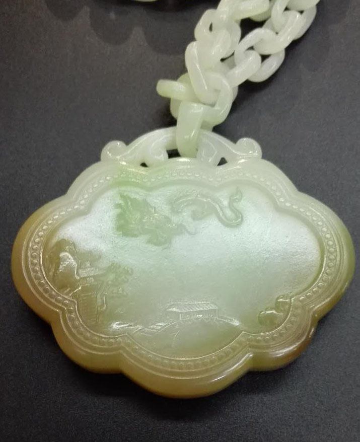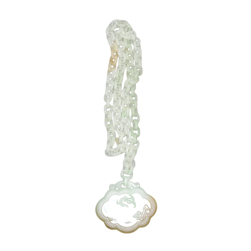 名稱:和田玉龍鳳祥云平安鎖(白翠糖)(鏈100個扣)2194-2