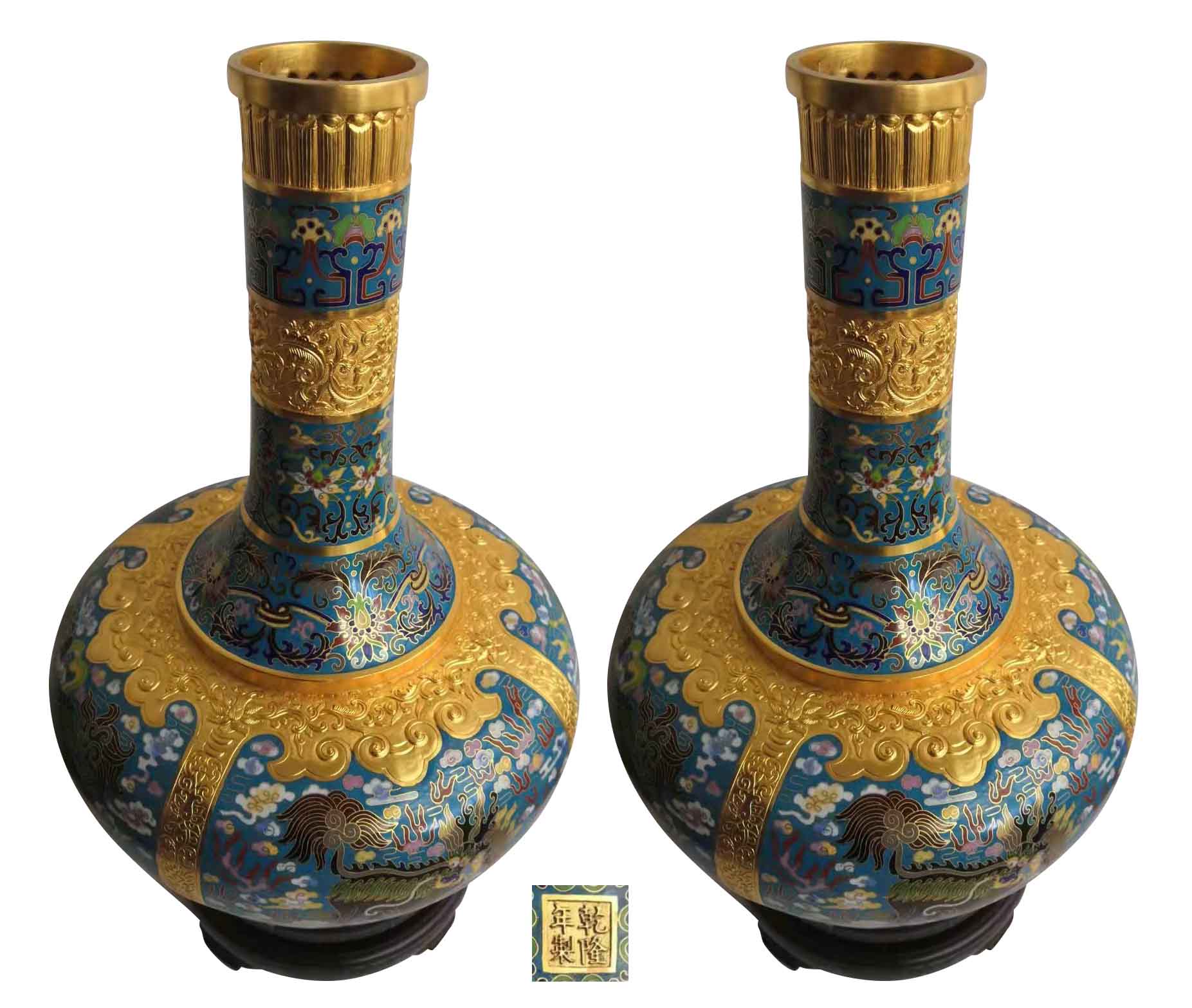 名稱:錢美花制景泰藍麒麟瓶一對