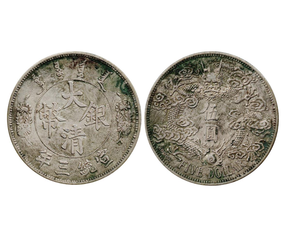 名稱:宣統(tǒng)三年大清銀幣伍圓曲須龍簽字版
