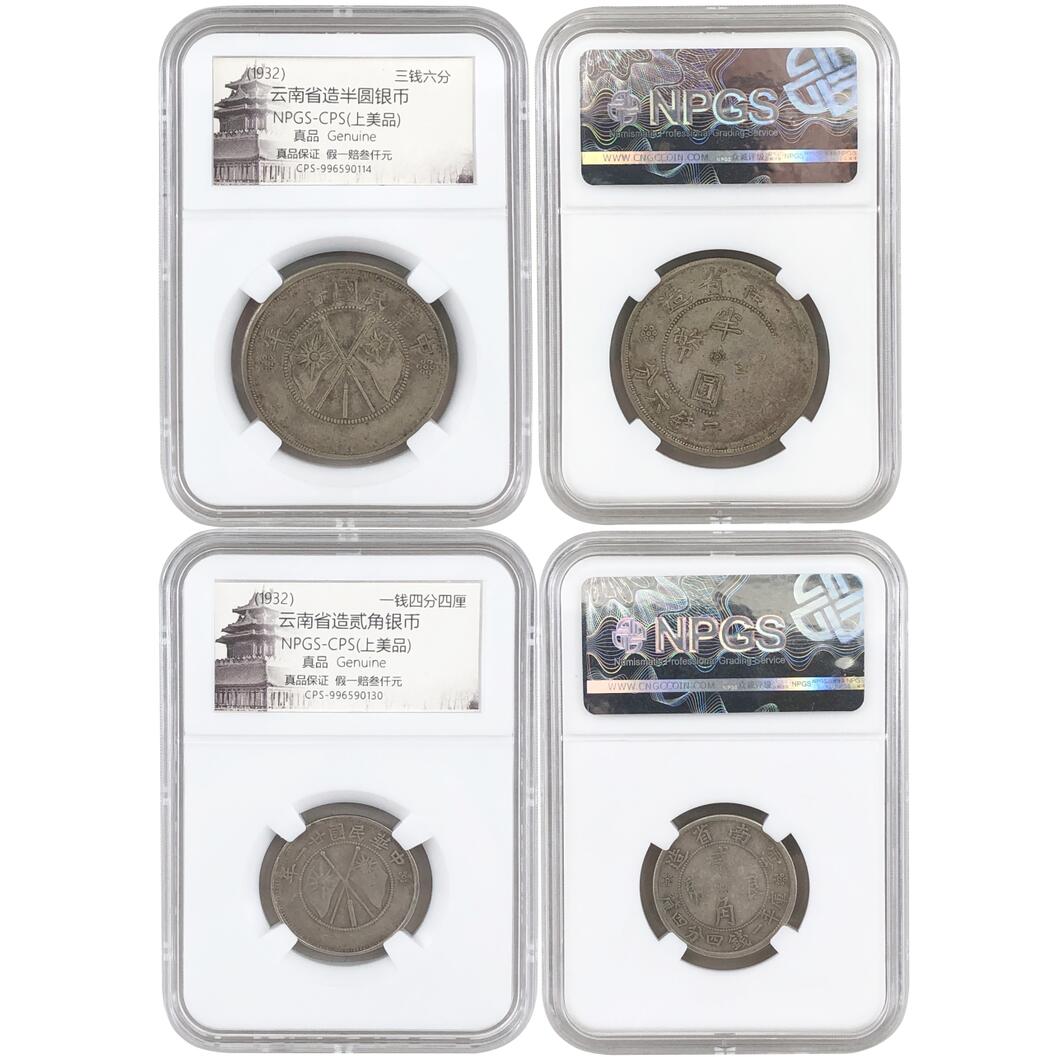 名稱:民國(guó)二十一年云南省造半圓雙旗銀幣 民國(guó)二十一年云南省造貳角雙旗銀幣