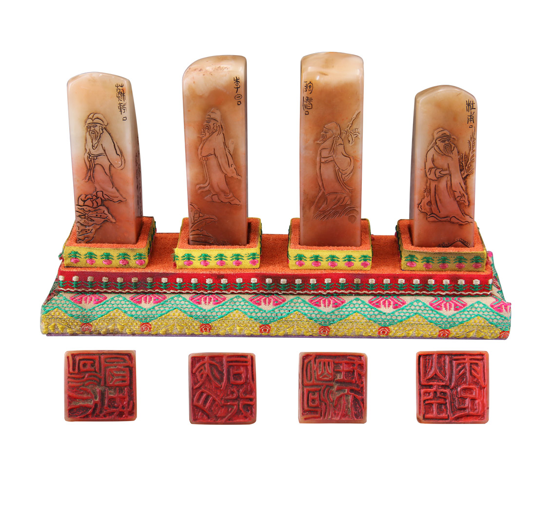名稱:清·雕刻大師徐星州刻·壽山芙蓉凍石淺浮雕四大詩人方章一套