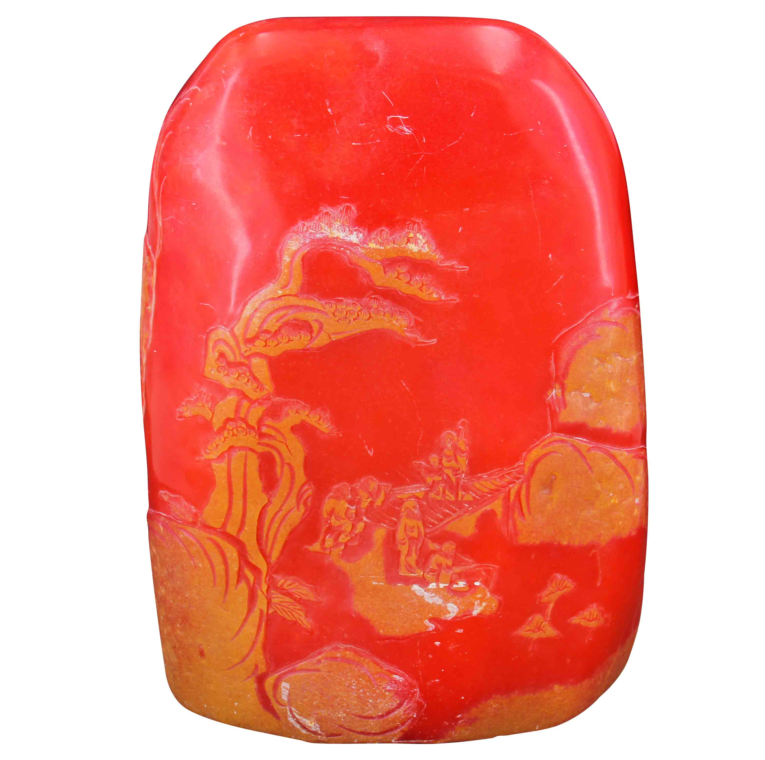 壽山紅田擺件〉取名貴壽山紅田黃石為材,素有“萬(wàn)石中之王”尊號(hào),其光彩奪目,非凡可比,天生的紅色使整塊石頭顯的精致神秘,此擺件黃皮紅芯、別具韻味!刀法犀利,清晰的刻畫(huà)紋路栩栩如生、古色古香,紅芯色鮮明亮,質(zhì)純潔、溫潤(rùn)、屬質(zhì)地特殊,器型材體碩大,珍罕少見(jiàn),紅田石就更是可遇不可求,乃收藏珍品也……