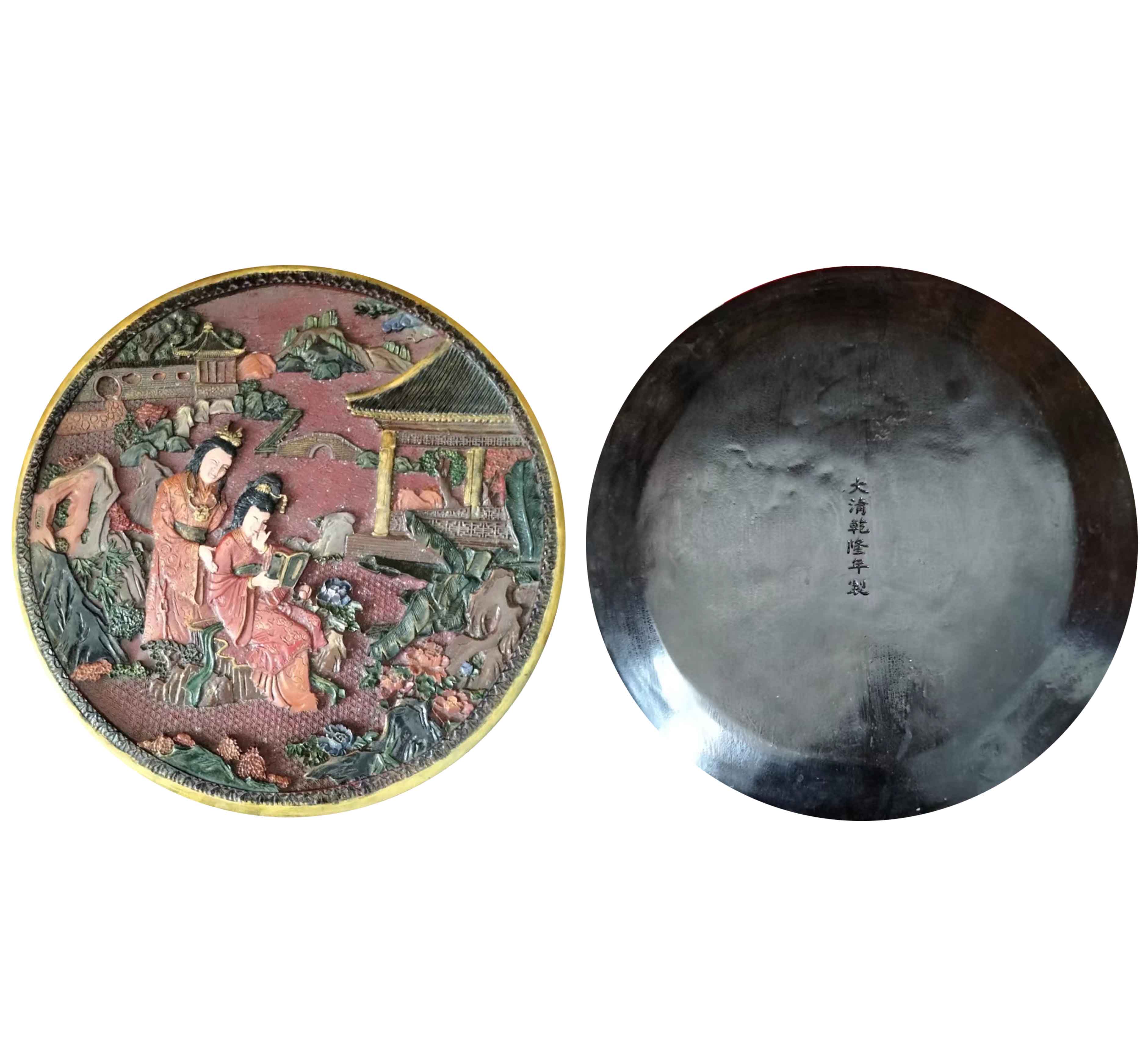 名稱:雕漆 大清乾隆年制款 仕女人物故事賞盤