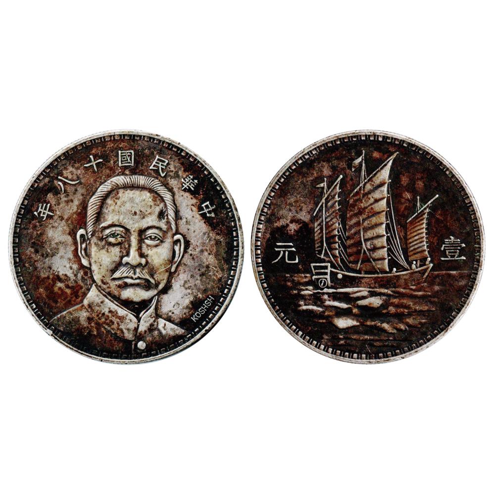名稱(chēng):中華民國(guó)十八年孫像三帆壹圓簽字版銀幣