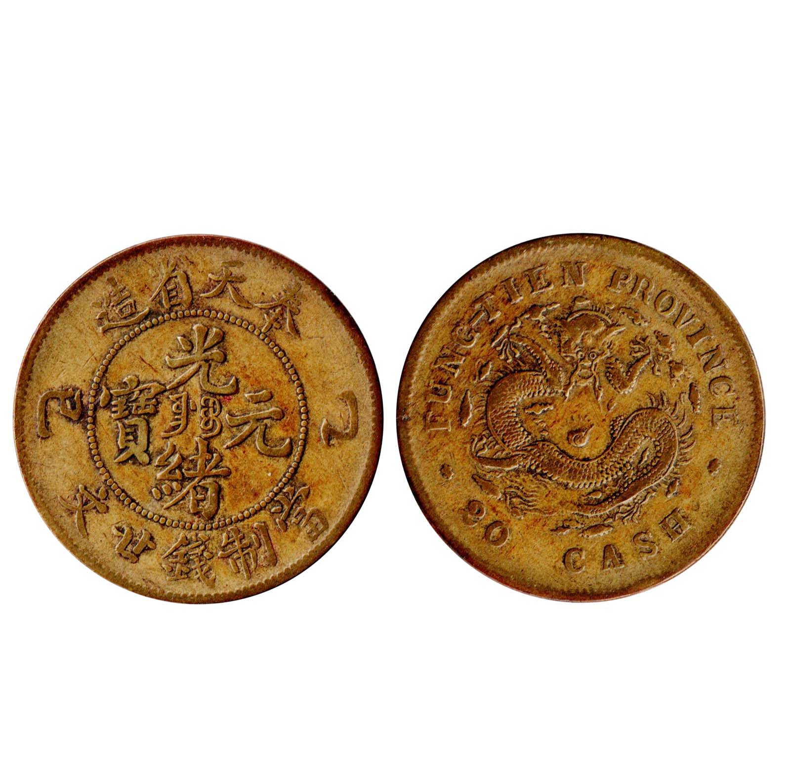 〈奉天省造光緒元寶當(dāng)制錢二十文〉乙巳——此錢幣紅銅材質(zhì),銅質(zhì)精良形制規(guī)整,銅幣正面中央鑄光緒元寶四漢字及滿文奉寶,外環(huán)珠圈上方奉天省造字樣,下為文字當(dāng)制錢二十文,左右邊飾乙巳紀(jì)年,背面鑄蟠龍圖、紋路精美栩栩如生,整體打模精美深峻,字跡雕刻清晰、包漿自然、筆法流暢、圖案表面錯落有致,立體感極強,保存完好、版品皆佳極具美感,存世量甚少、可見其珍貴,具有極高的收藏價值和經(jīng)濟價值,值得珍藏!