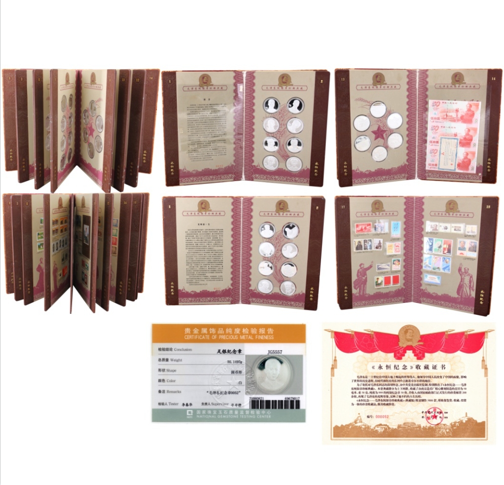 《永恒紀(jì)念---毛澤東純銀章珍郵典藏》是一部理念偉大領(lǐng)袖的珍藏品,用各時(shí)期的珍惜郵票及銀幣紀(jì)念章的形式展現(xiàn)出偉人的偉大一生,紀(jì)念章采用鏡面浮雕的手法及完美的工藝和藝術(shù)的內(nèi)涵巧妙結(jié)合,充分的顯示出濃厚的歷史底蘊(yùn),紅色珍郵的內(nèi)容豐富、版式特別,珍藏程度不言而喻,在國(guó)內(nèi)發(fā)行的歷史上都是極為罕見(jiàn),其內(nèi)涵之深重、意義之深遠(yuǎn),更是展現(xiàn)了偉人的輝煌歷程,升值空間極為較高,深受收藏投資愛(ài)好者爭(zhēng)相收藏……