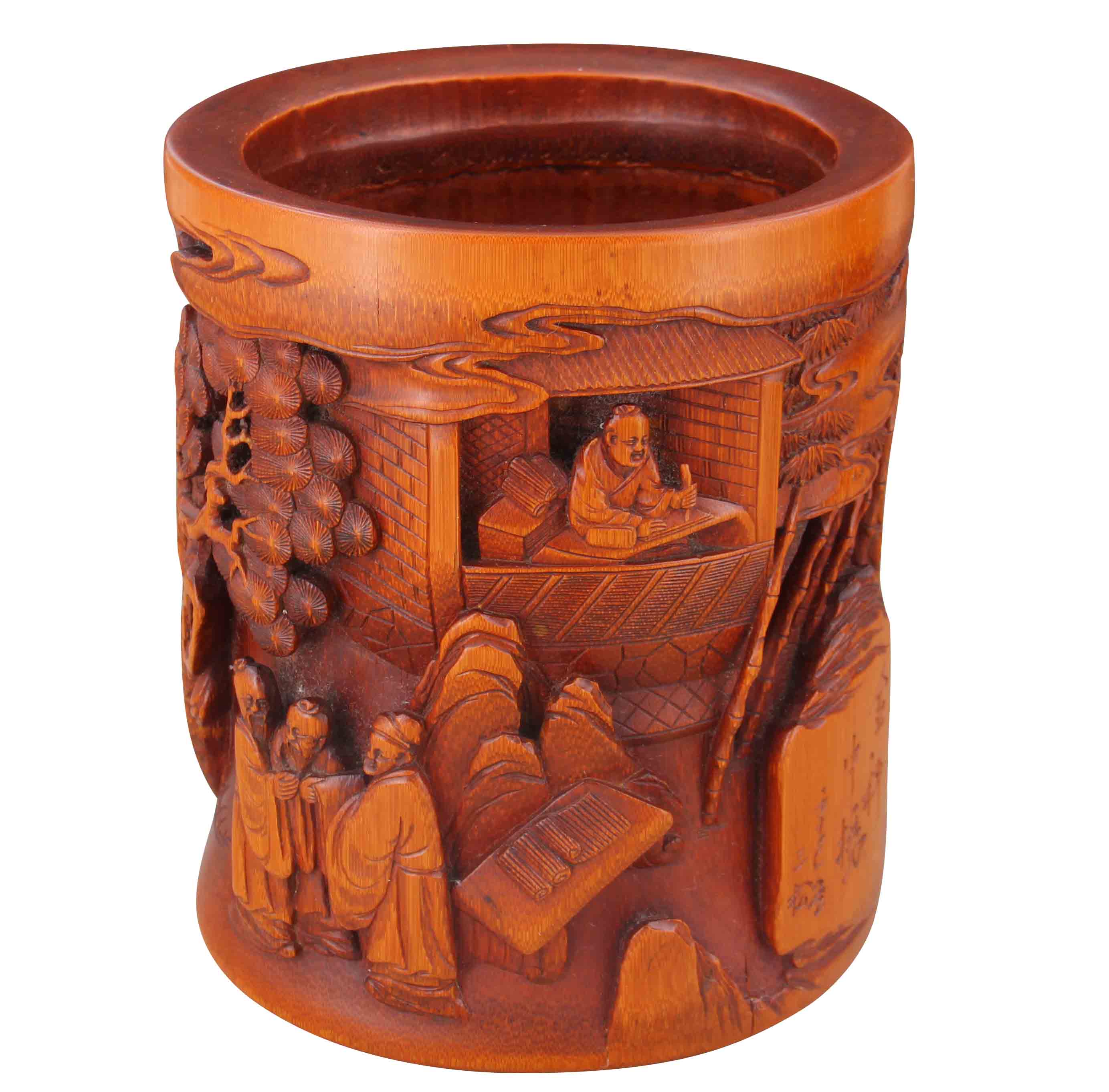 名稱:三松竹雕人物故事筆筒