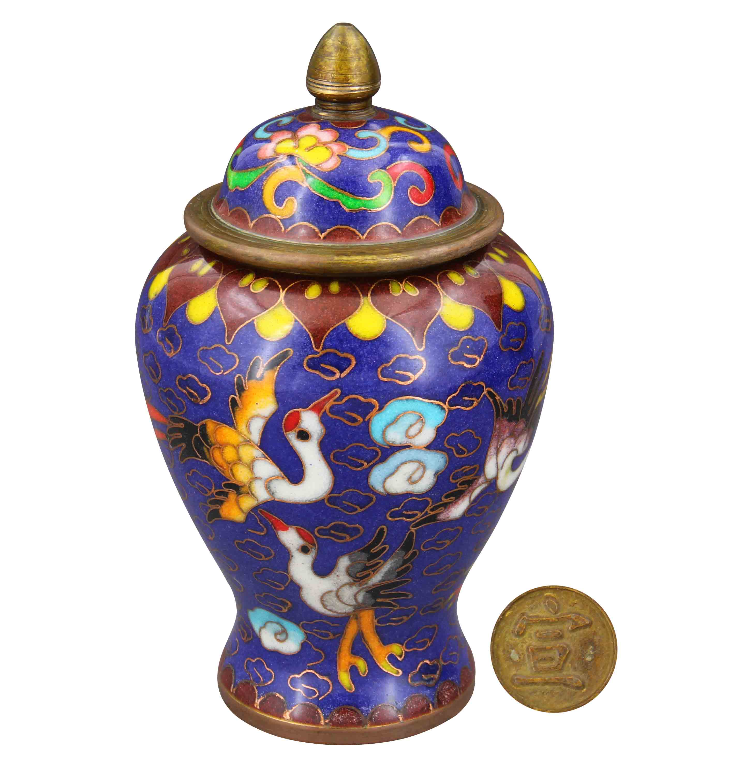 名稱:宣字款·掐絲景泰藍(lán)鶴紋描金將軍罐