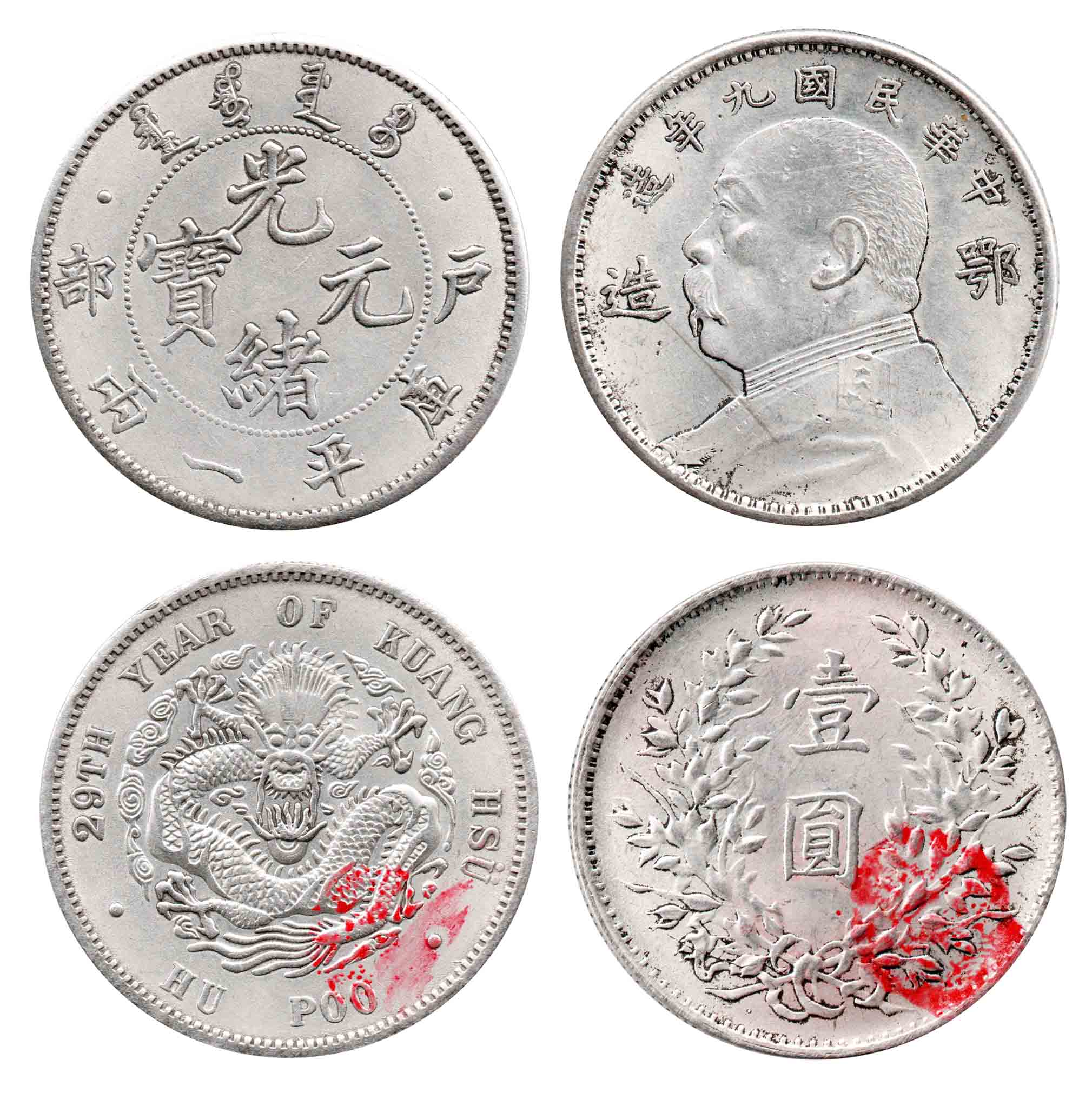 名稱:民國(guó)九年鄂造袁像壹圓,光緒元寶戶部庫(kù)平一兩銀幣一組