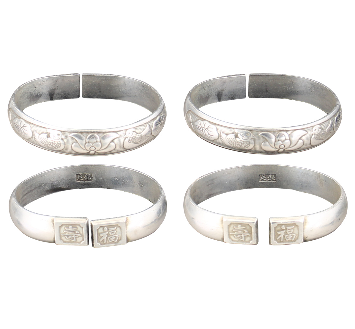 名稱:足銀福壽鴛鴦對鐲