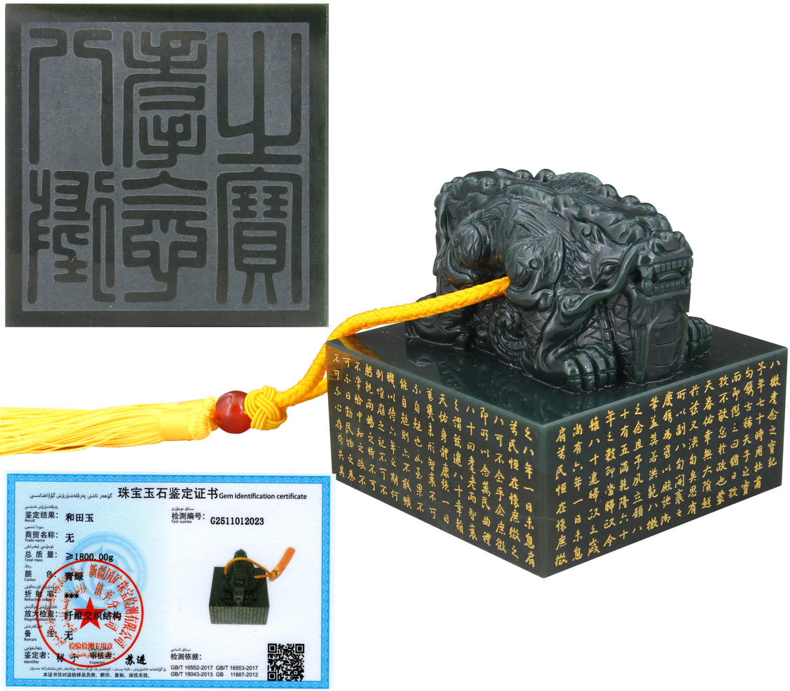 名稱:青綠和田玉《八徽耄念之寶》玉璽